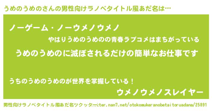 | ヒーロー風カッコイイあだ名 | 『慈愛の使者うめのうめの』 |