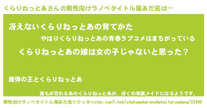 | ヘコむあだ名 | 『くらお』『くらりねっとあ(爆)』 |