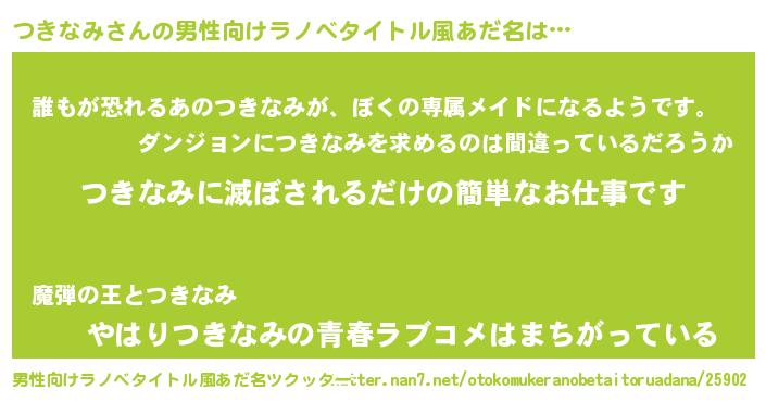 | ヒーロー風カッコイイあだ名 | 『ネオツキナミ』『ウルトラつきなみマン』 |