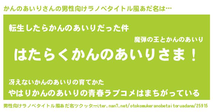 | 胡散臭い通販商品みたいなあだ名 | 『世界が平和になる高級そうな皿…その名も「かんのあいり」』 |