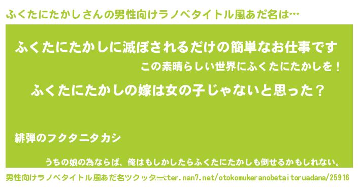 | 女子向けラノベタイトル風あだ名 | 『ふくたにたかし様がみてる』 |