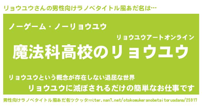 | 女子向けラノベタイトル風あだ名 | 『リョウユウなんてお断りですっ。』 |