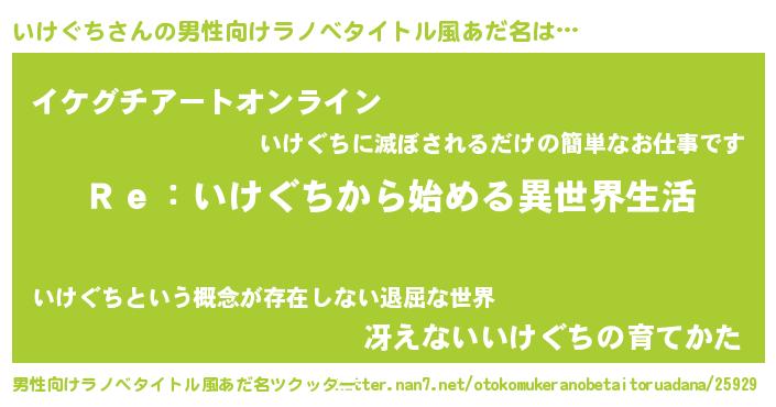 | 女子向けラノベタイトル風あだ名 | 『いけぐちストレイドッグス』 |