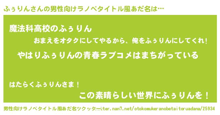 | 女子向けラノベタイトル風あだ名 | 『ふぅりんの雑貨屋さん』 |