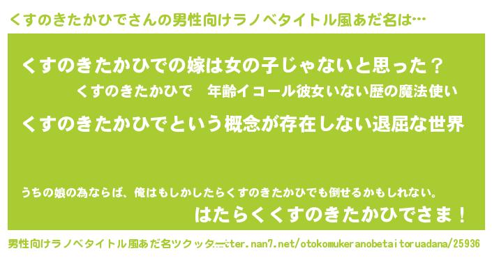 | 女子向けラノベタイトル風あだ名 | 『くすのきたかひでの契約王妃』 |