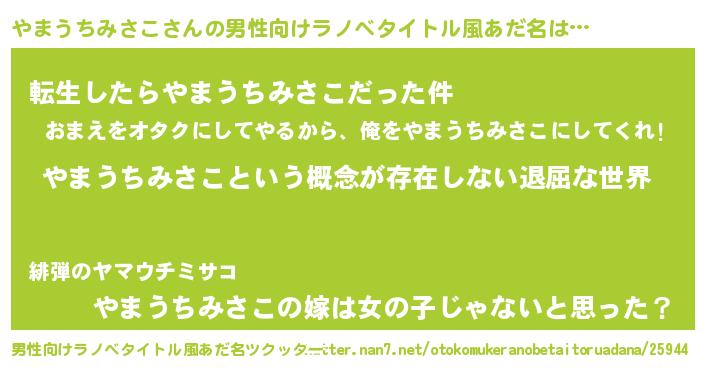 | 女子向けラノベタイトル風あだ名 | 『異世界で失敗しない100のやまうちみさこ』 |