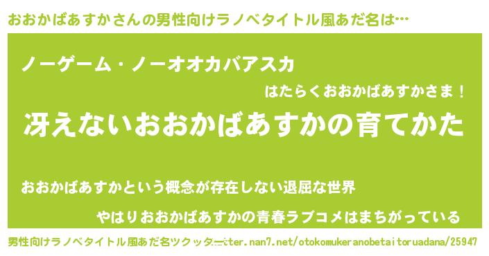 | ヘコむあだ名 | 『豆乳』『おおかばあすか(笑)』 |