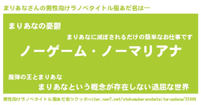 | ヒーロー風カッコイイあだ名 | 『慈愛の使者まりあな』『ネオマリアナ』 |