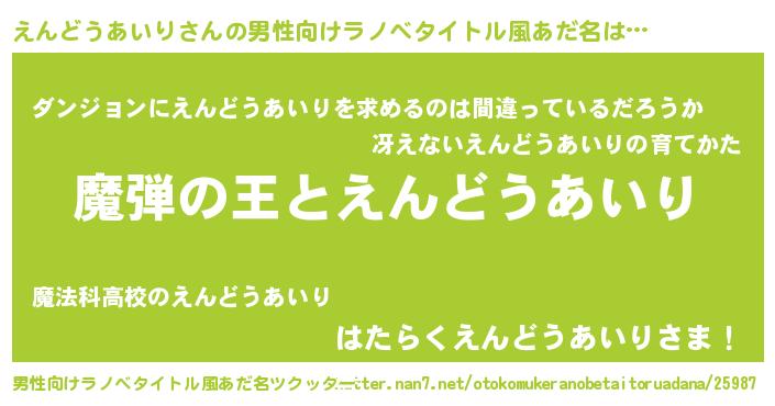 | 意味不明あだ名 | 『住所不定無職えんどうあいり(4歳)』 |