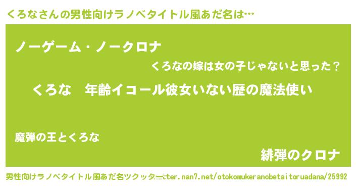 | 女子向けラノベタイトル風あだ名 | 『くろなの玉の輿計画!』 |