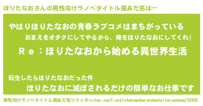| 女子向けラノベタイトル風あだ名 | 『闇のほりたなお』 |