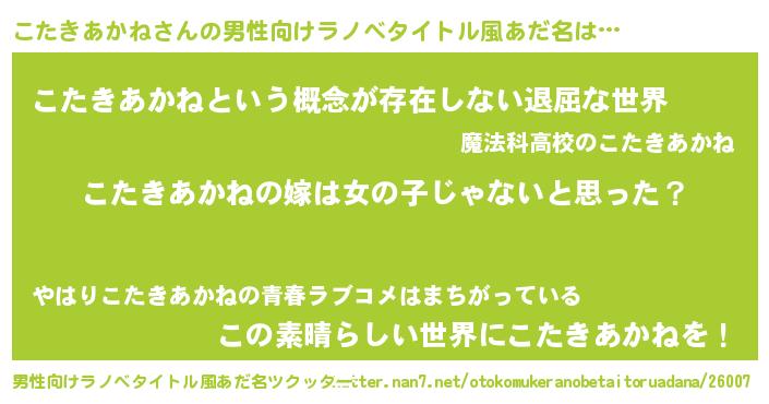 | 女子向けラノベタイトル風あだ名 | 『こたきあかね様がみてる』 |