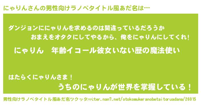 | ヘコむあだ名 | 『にゃっぺ』『にゃりん(苦笑)』 |