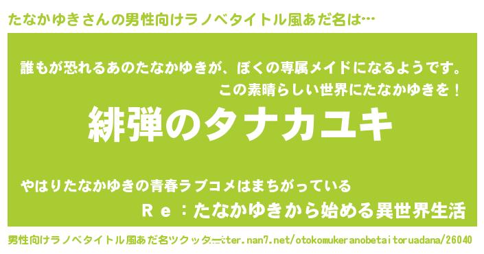 | ヘコむあだ名 | 『たなかゆき(笑)』『なまこ酢』 |