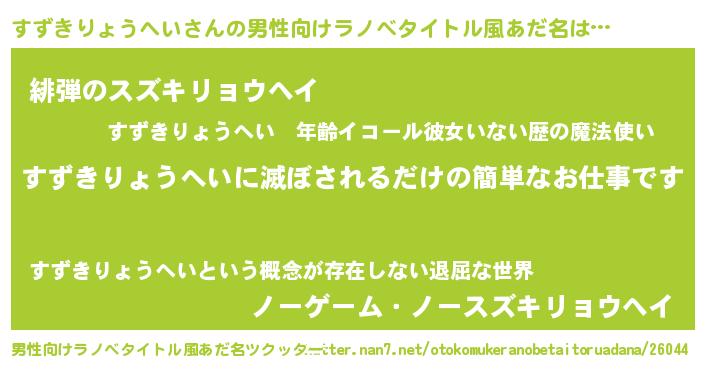 | ヒーロー風カッコイイあだ名 | 『慈愛の使者すずきりょうへい』 |