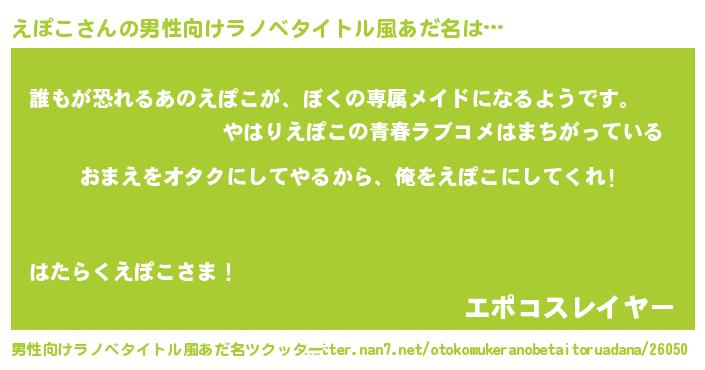 | 女子向けラノベタイトル風あだ名 | 『えぽこ夫妻のなれそめ』 |