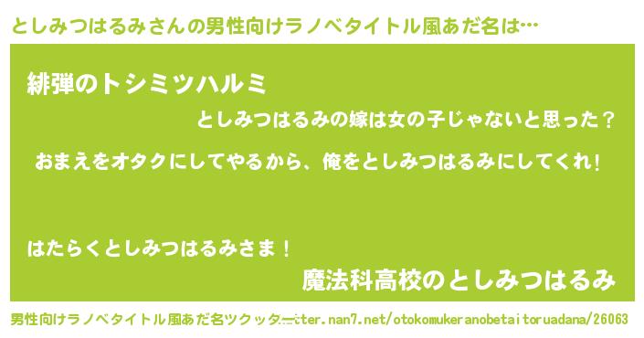 | 胡散臭い通販商品みたいなあだ名 | 『お金では代えられないイリジウム磁石…その名も「としみつはるみ」』 |