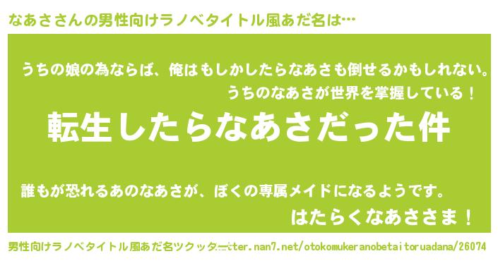 | ヒーロー風カッコイイあだ名 | 『ウルトラなあさマン』『ネオナアサ』 |
