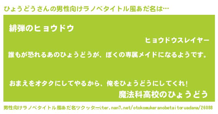 ひょうどうさんの男性向けラノベタイトル風あだ名をツクッター!