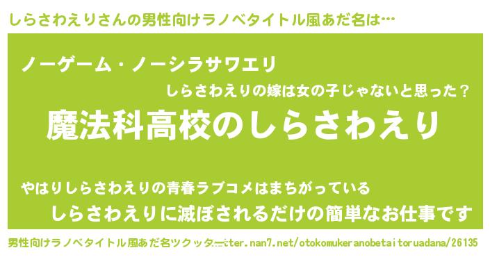| 意味不明あだ名 | 『自称しらさわえり』 |