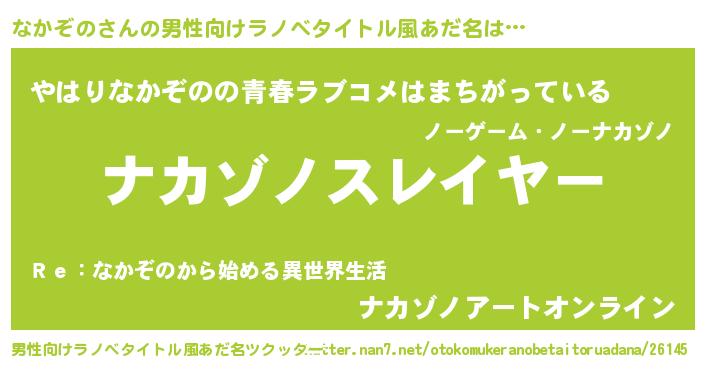 | ヒーロー風カッコイイあだ名 | 『ウルトラなかぞのマン』『黄金騎士ナカ』 |