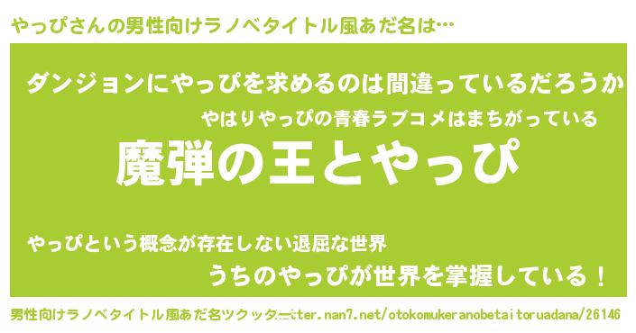 | 女子向けラノベタイトル風あだ名 | 『やっぴが死なない童話 林檎のやっぴの診療簿』 |