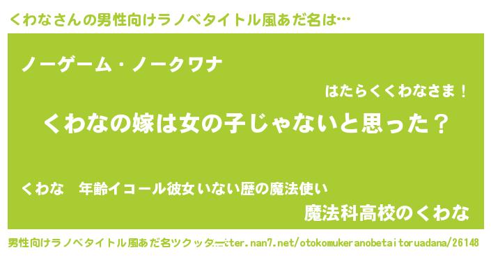 | 意味不明あだ名 | 『とにかく怪しいくわな』『自称くわな』 |