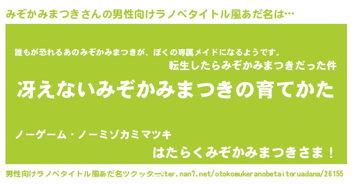 | 胡散臭い通販商品みたいなあだ名 | 『来世でも幸せになれる水素水…その名も「みぞかみまつき」』 |