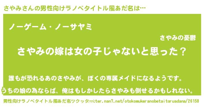 さやみさんの男性向けラノベタイトル風あだ名をツクッター!