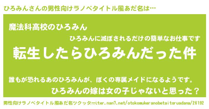 | ヒーロー風カッコイイあだ名 | 『最強戦士ヒロミン』『炎刃騎士ヒロ』 |