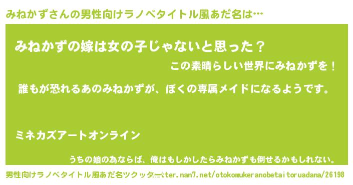 | 女子向けラノベタイトル風あだ名 | 『異世界でカフェみねかずを開店しました。』 |