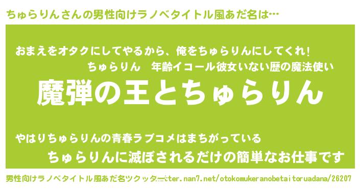| 女子向けラノベタイトル風あだ名 | 『ちゅらりんが死なない童話 林檎のちゅらりんの診療簿』 |