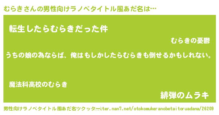 | 女子向けラノベタイトル風あだ名 | 『むらきの婚約者』『むらきアンティーク』 |