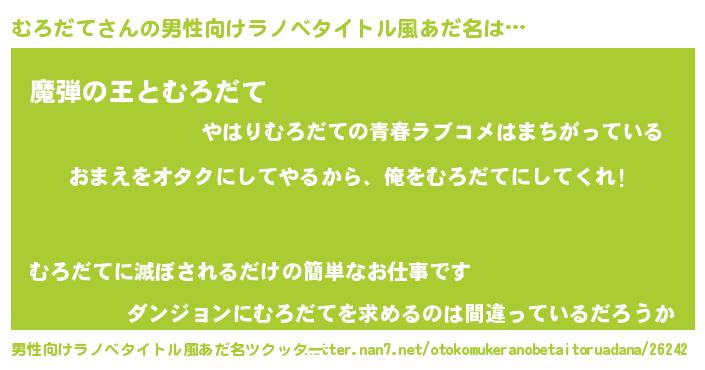 | 胡散臭い通販商品みたいなあだ名 | 『100人中100人が認めたイリジウム磁石…その名も「むろだて」』 |