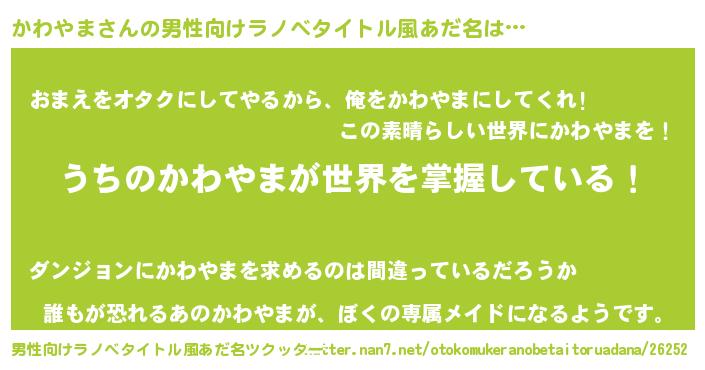 | 女子向けラノベタイトル風あだ名 | 『男装かわやまの憂鬱な任務』 |
