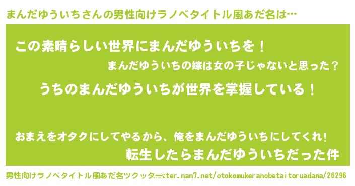 意味不明あだ名 | 『住所不定無職まんだゆういち(74歳)』 |