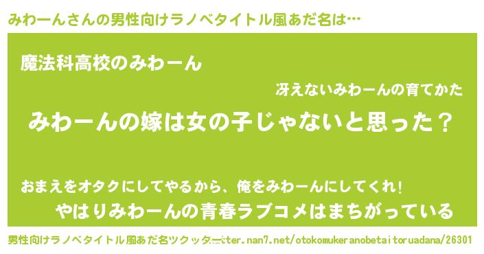 | 女子向けラノベタイトル風あだ名 | 『みわーん様がみてる』『みわーん恋絵巻』 |