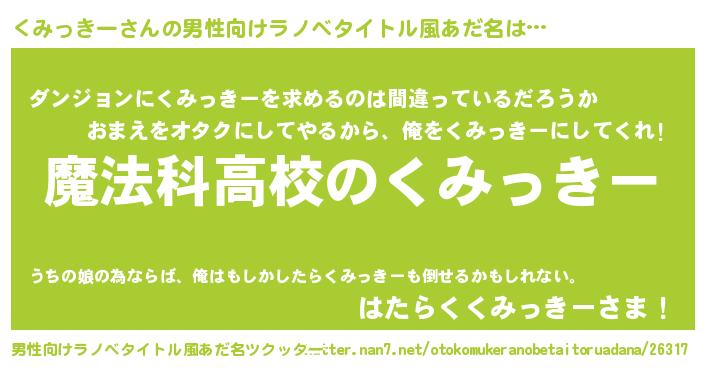 | 女子向けラノベタイトル風あだ名 | 『くみっきーアンティーク』 |
