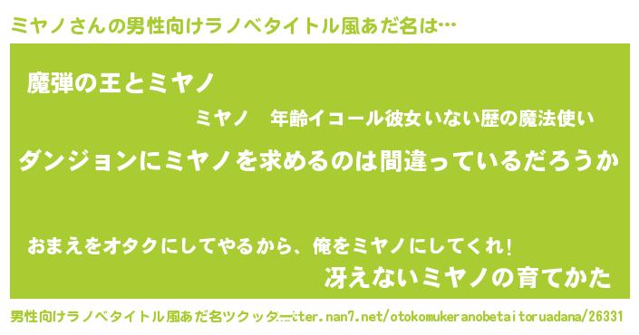 | 胡散臭い通販商品みたいなあだ名 | 『伝統あるサプリメント…その名も「ミヤノ」』 |