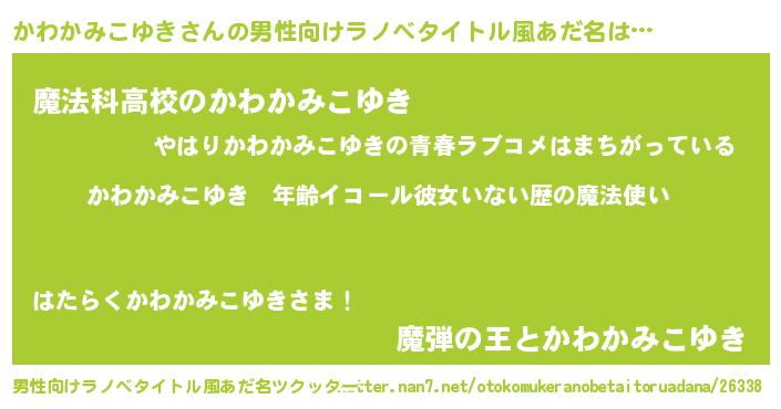 | 女子向けラノベタイトル風あだ名 | 『かわかみこゆきの玉の輿計画!』 |