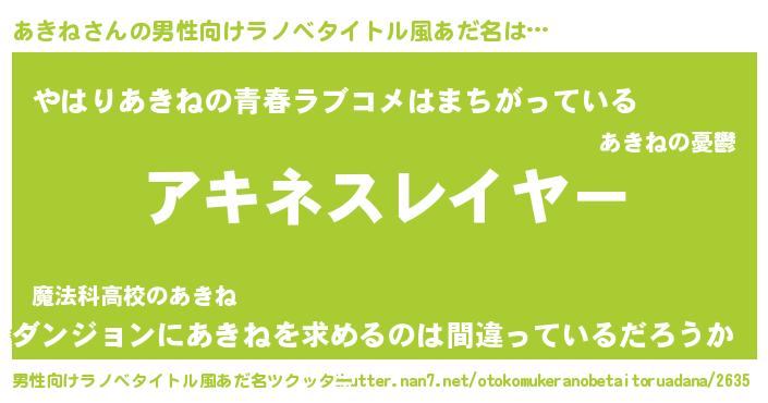 | 伝説のあだ名 | 『秘められし忍者あきね』 |