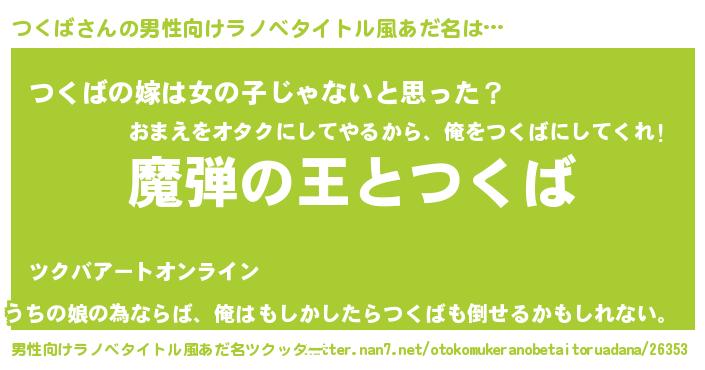| 女子向けラノベタイトル風あだ名 | 『乙女ゲームの破滅フラグしかない悪役つくばに転生してしまった…』 |