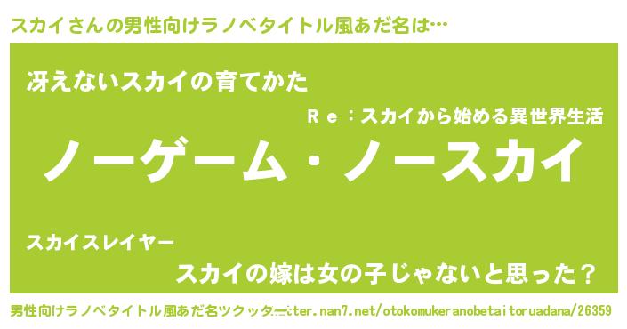 | 女子向けラノベタイトル風あだ名 | 『スカイ恋絵巻』『スカイ様がみてる』 |