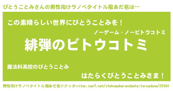 | 意味不明あだ名 | 『住所不定無職びとうことみ(12歳)』 |
