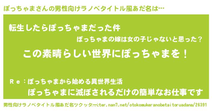 | 胡散臭い通販商品みたいなあだ名 | 『あなたにだけ特別に提供する世界で10本だけ現存している希少なブランデー…その名も「ぽっちゃま」』 |