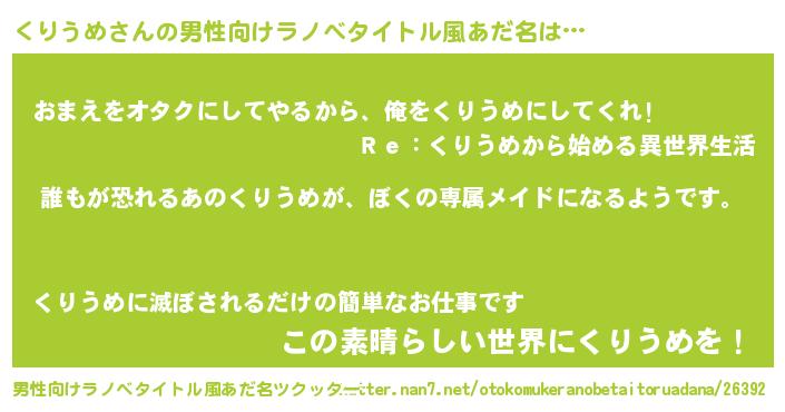 | 意味不明あだ名 | 『永久保存くりうめ』『自称くりうめ』 |