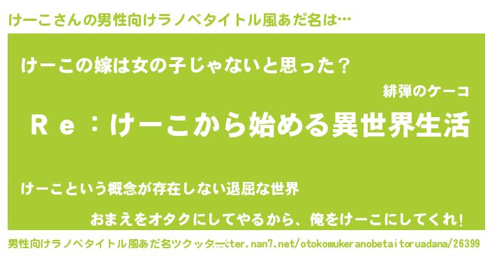 | 意味不明あだ名 | 『自称けーこ』『とにかく怪しいけーこ』 |