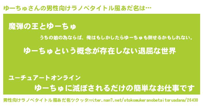 | 胡散臭い通販商品みたいなあだ名 | 『来世でも幸せになれる健康食品…その名も「ゆーちゅ」』 |