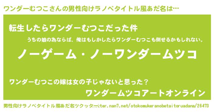 | 女子向けラノベタイトル風あだ名 | 『死神ワンダーむつこの再婚』 |