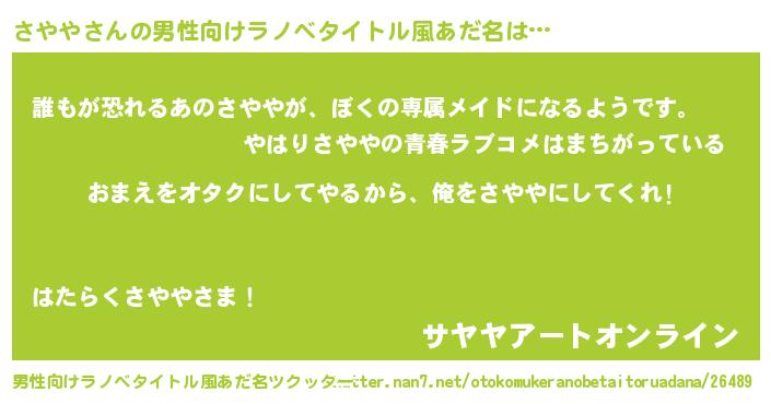 | 女子向けラノベタイトル風あだ名 | 『さやや夫妻のなれそめ』 |
